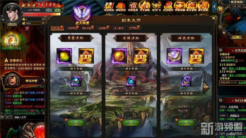 副本玩法對(duì)應(yīng)角色等級(jí)和系統(tǒng)進(jìn)度開(kāi)啟,每天可以重復(fù)挑戰(zhàn),VIP玩家可以掃蕩通關(guān)。