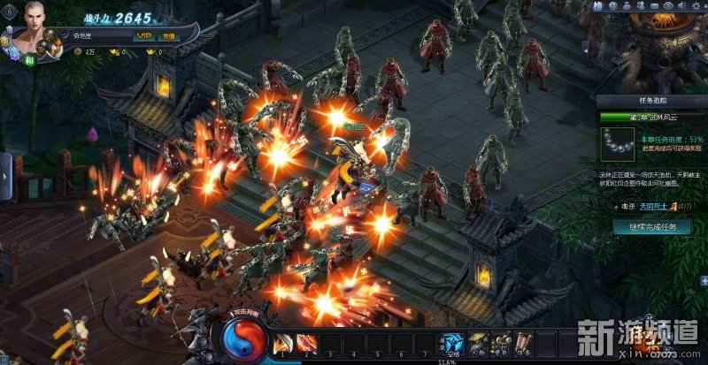 戰(zhàn)斗模式輕快,技能表現(xiàn)上就少林門派來說,以符合少林特色為主,金色基調(diào)的技能特效,短CD的群攻技能,刷起怪來很效率。