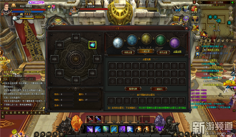 占星系統(tǒng)的功能是可以通過在占星魔法陣中放入占星石來永久提升角色的攻防血量等屬性