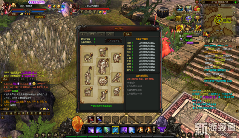 通過提升血脈等級可提升裝備效果,升級10種不同的神圣血脈,對應不同部位的裝備屬性百分比加成