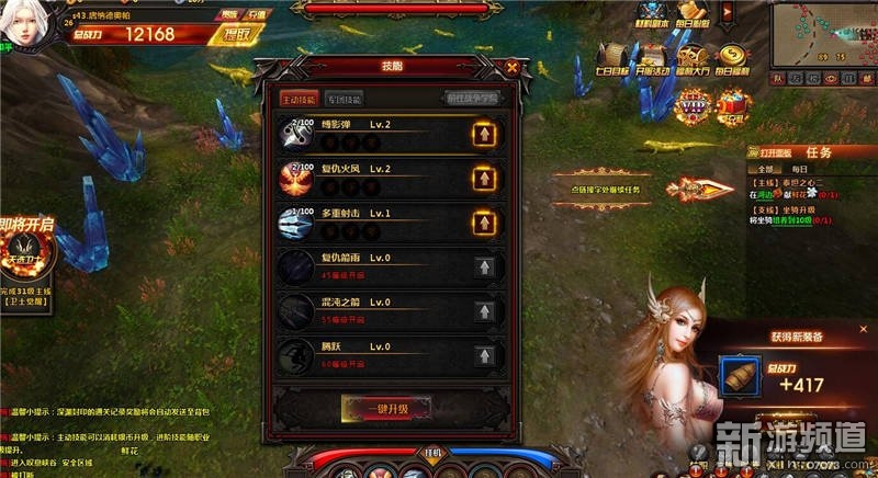 角色打怪釋放出華麗麗的主動(dòng)技能之復(fù)仇鳳凰。玩家可消耗銀幣進(jìn)行技能升級(jí)。