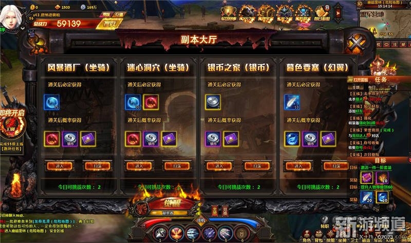玩家可以通過(guò)副本面板需找對(duì)應(yīng)的副本入口。每隔副本都可以挑戰(zhàn)3次,每日的0點(diǎn)重置次數(shù)。