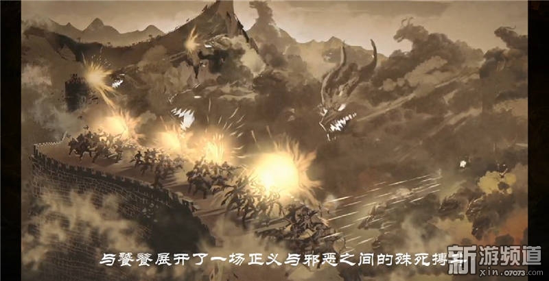游戲以張藝謀賀歲電影巨制《長城》為藍(lán)本,劇情完全貼合原作,一開始就有一段水墨畫風(fēng)的過場動畫,詳細(xì)交代了游戲背景。
