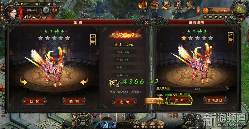 游戲中玩家達(dá)到16級即可啟動坐騎系統(tǒng)!不僅擁有霸氣外形,加速腳力,還有大量戰(zhàn)力加成哦!