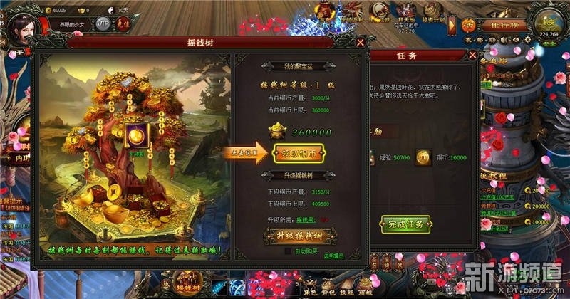 搖錢樹每隔10秒產(chǎn)出一次銅幣,直到到達(dá)搖錢樹的存儲上限為止。搖錢樹升級之后產(chǎn)出銅幣的速度會加快。