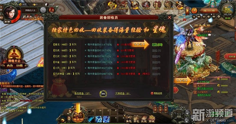 玩家可以將不需要的裝備通過裝備回收的方式獲得大量的角色經(jīng)驗(yàn)和玩法資源。