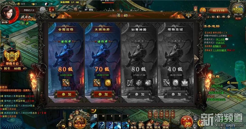 在每日的指定時(shí)間段,游戲會開啟對應(yīng)的活動系統(tǒng),符合等級要求的玩家可以前來一戰(zhàn)!