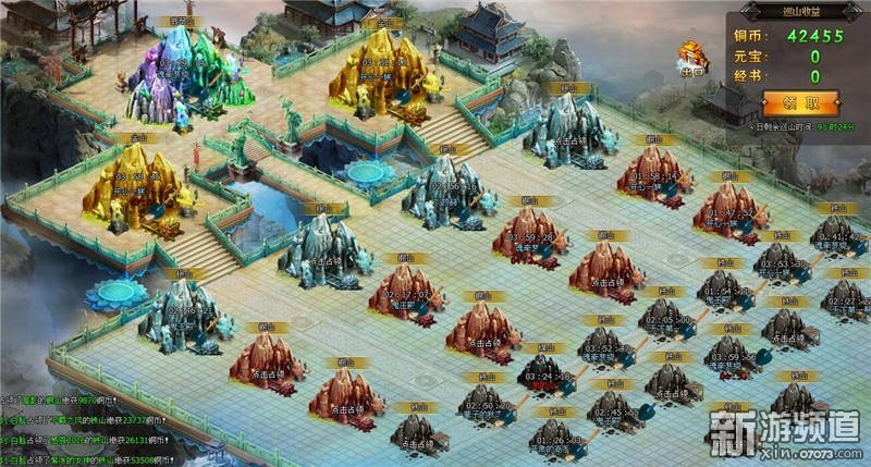 進(jìn)入巡山系統(tǒng),占領(lǐng)礦山可獲得豐厚的銅幣獎勵(lì),占領(lǐng)金山、翡翠山的玩家更是可獲得非綁元寶的獎勵(lì)。