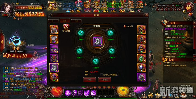 強化裝備并鑲嵌寶石,每個級別都會提供大量的屬性加成,會使角色更加強大。