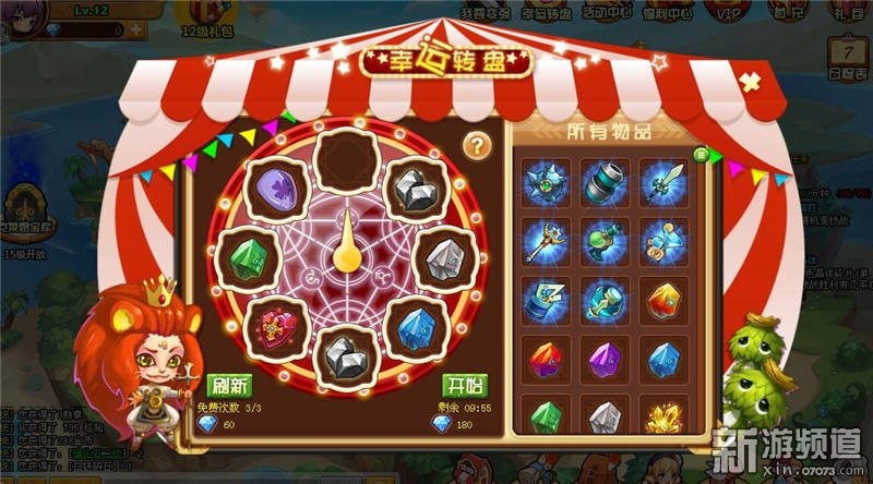 幸運轉(zhuǎn)盤里有八種強化石供玩家選擇,每天有兩次免費的機會,再想玩的話只好花費鉆石嘍!