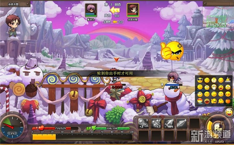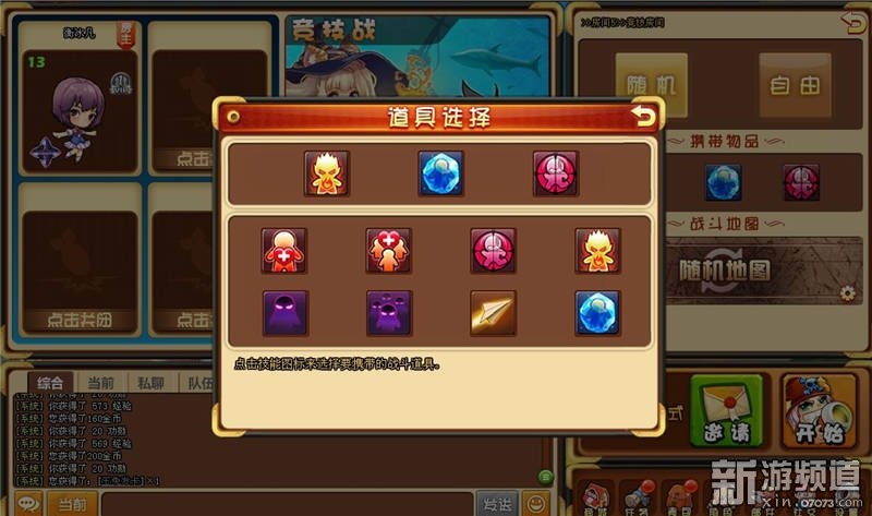 在開始對戰(zhàn)之前,玩家可以選擇攜帶物品,有八種進攻和防守的技能供玩家選擇。