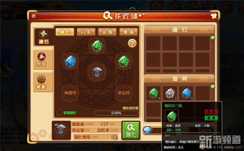 通過競技和日常獎勵所獲取的道具可以在鐵匠鋪里完成強化、升階等任務。