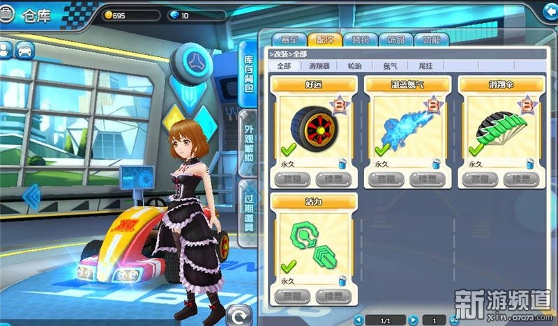 倉(cāng)庫(kù)里包含了玩家通過比賽和購(gòu)買獲取的所有裝備。有些裝備是限時(shí)使用,記得及時(shí)續(xù)費(fèi)哦。
