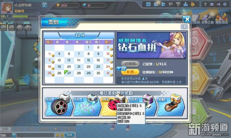 每天點(diǎn)一遍簽到系統(tǒng),絕不會(huì)讓你空手而歸。每天玩夠一小時(shí)可以免費(fèi)補(bǔ)簽一次哦。