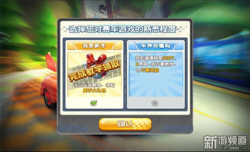 選擇完角色后,系統(tǒng)會(huì)要求玩家確認(rèn)自己的操控水平,懂得“連飄帶甩”等技能的玩家可以略過新手教學(xué)。