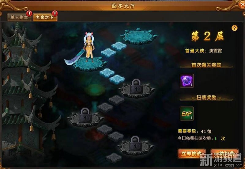 九泉之下為單人闖關(guān)爬塔類副本,共75層,從第1層開始挑戰(zhàn),前1層未通過不可挑戰(zhàn)下1層。
