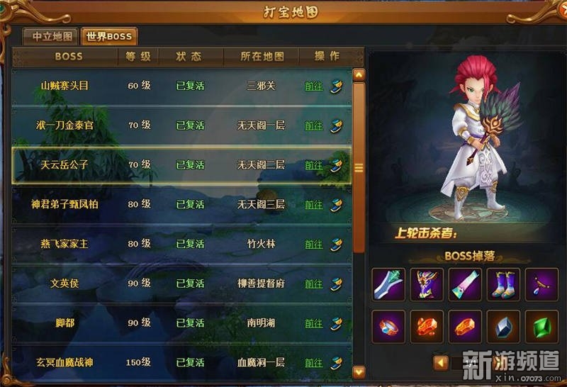 40級以上每張地圖有一個世界BOSS守護(hù),點擊小飛鞋即可傳送到對應(yīng)BOSS的位置。
