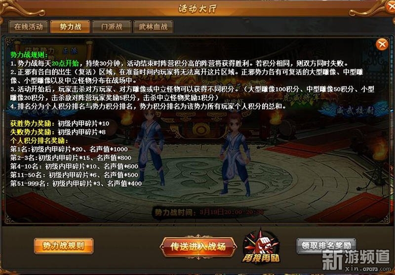 《新熱血江湖》的血戰(zhàn)武林無疑可以滿足你的夢想,活動持續(xù)30分鐘,多人大亂斗PK。