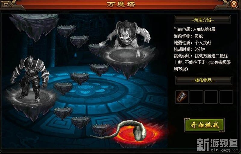 萬魔塔開啟前人物等級需要達(dá)到60級。挑戰(zhàn)不限次數(shù),只能往上打不能往回打,萬魔塔每層限制時間為3分鐘。