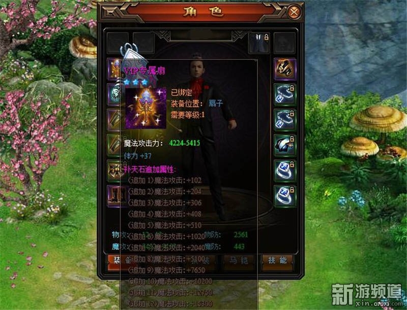 角色界面包含人物等級,血量,藍(lán)值,VIP,稱號以及目前裝備等重要信息。