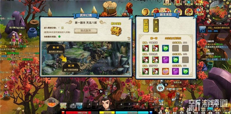 武林幻境以挑戰(zhàn)劇本為核心,其中又細(xì)分為數(shù)個(gè)章節(jié),在開始挑戰(zhàn)前可以一覽每一章節(jié)的戰(zhàn)斗獎(jiǎng)勵(lì)。