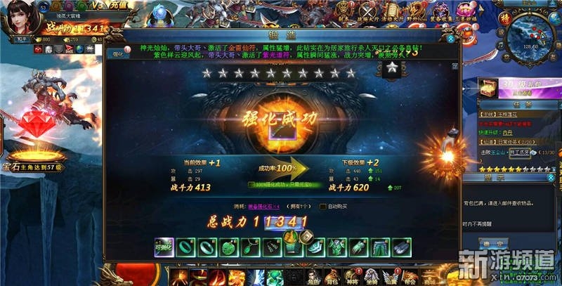 消耗強化石,可以對裝備進行升星,強化成功則點亮星星,相應(yīng)屬性獲得提升。