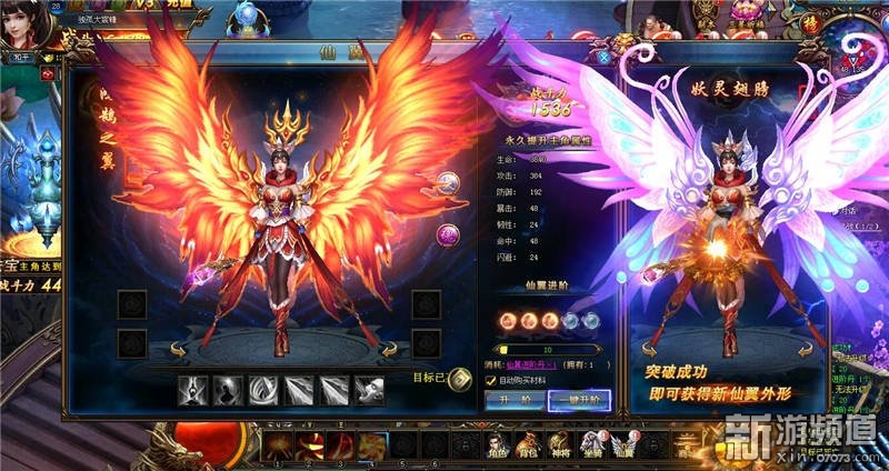 升階消耗仙翼進階丹,當(dāng)升階值滿可點亮一顆星。三階段之前,點亮五顆星則直接升級到下一階。