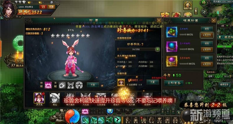 每只珍獸擁有一個技能和三個天賦。及時升級后他們就能很好的協(xié)助主人御敵殺怪了。
