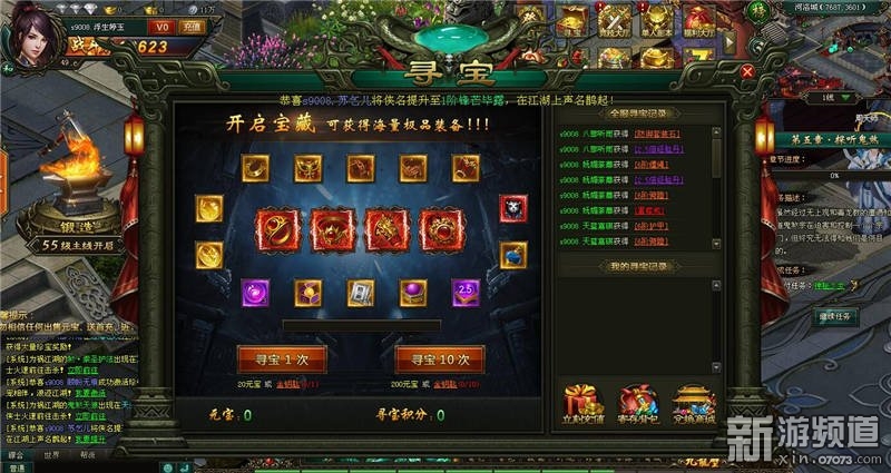 通過尋寶系統(tǒng),玩家可以更便捷地去尋找稀世珍寶。消耗金鑰匙或元寶,可進行1次或10次尋寶。
