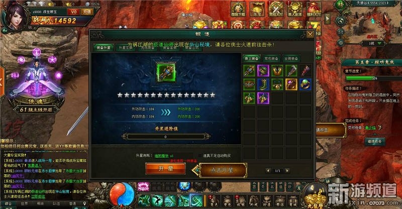 鍛造界面主要包括洗練與升星等功能。通過打怪獲得的各種道具在這里可以作為進階道具使用。