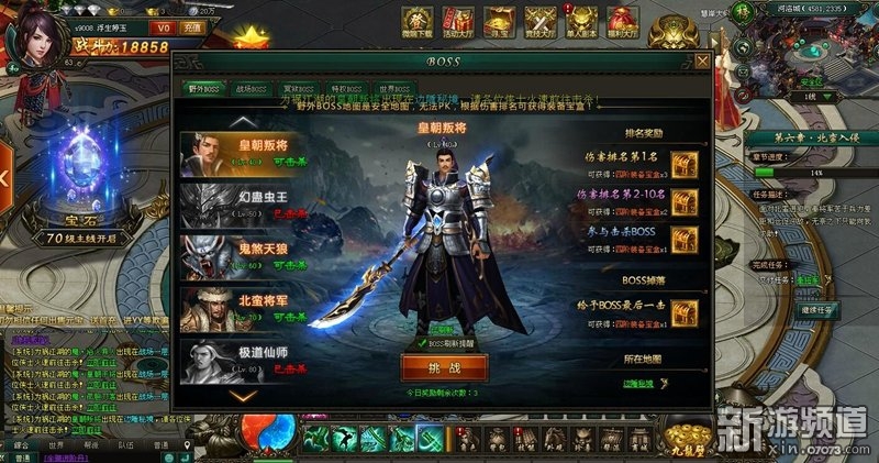玩家可隨意挑選BOSS完成擊殺。如野外boss,只要參與擊殺即可獲得獎勵,若進入傷害排名會有豐厚獎勵。