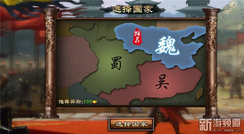 三國鼎立的巔峰時(shí)期你更青睞哪一個(gè)國家呢?反正小編毫不猶豫地選了游戲推薦的魏國,獲得了兩百金元寶。