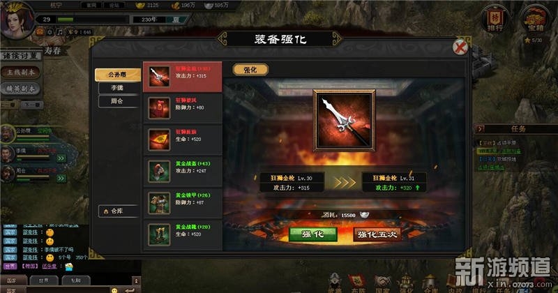 一套順手的武器可以大幅提升武將的實(shí)力,在裝備強(qiáng)化界面需要消耗資源進(jìn)行武將裝備的強(qiáng)化。