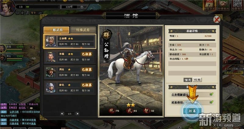 打開酒館后則可查看武將的基礎(chǔ)詳情。當(dāng)玩家完成武將指定任務(wù)后會(huì),該武將才會(huì)在酒館中解鎖。