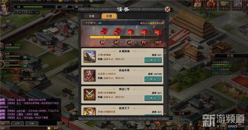 在每一輪的國家任務(wù)中,系統(tǒng)給玩家分配3個(gè)固定個(gè)人任務(wù)目標(biāo),當(dāng)玩家完成該目標(biāo)時(shí),獲得相應(yīng)的個(gè)人獎(jiǎng)勵(lì)。