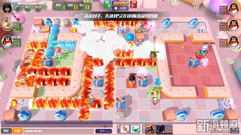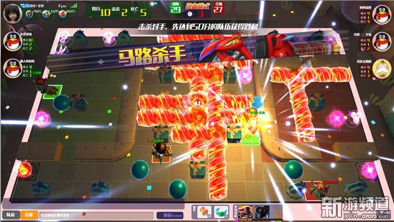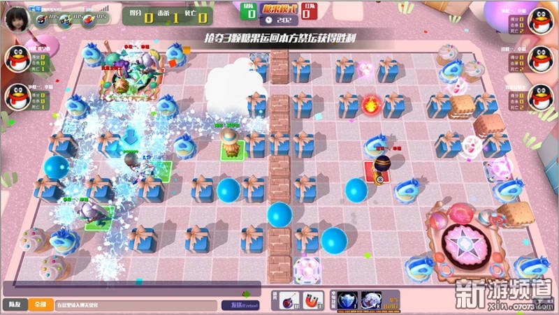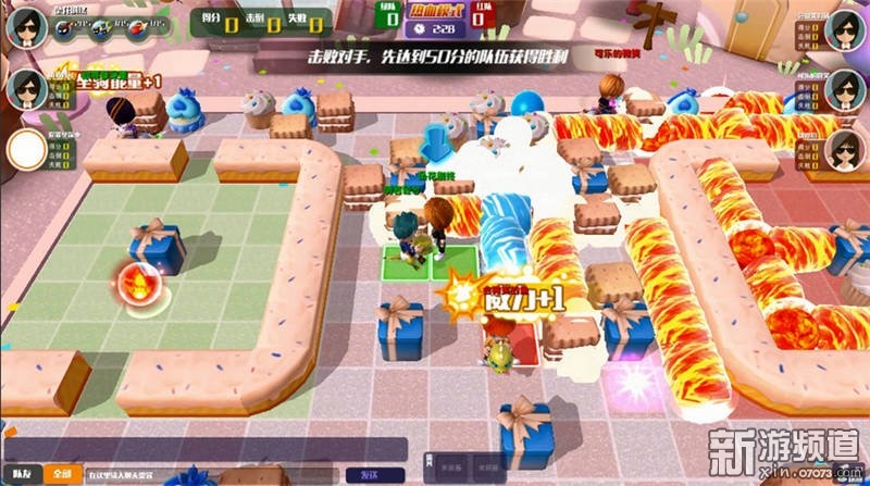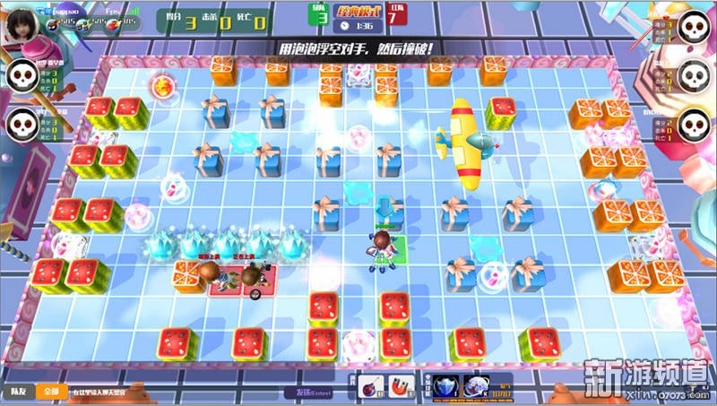 經(jīng)典模式還原經(jīng)典炸彈人玩法,3v3對戰(zhàn),釋放泡泡攻擊對手,3分鐘內(nèi)炸死對手次數(shù)多的一方獲勝。