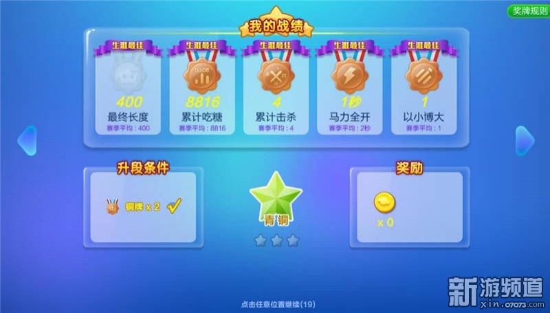 爭霸結(jié)束后出現(xiàn)的第二個界面是玩家自己的戰(zhàn)斗成績,主要包括已獲得的勛章。