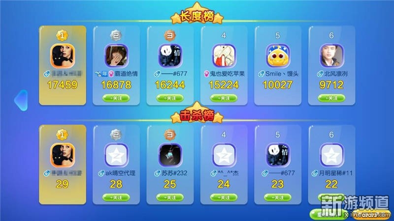 最后展示的界面是本輪游戲的擊殺榜與長度榜,小編費了九牛二虎的洪荒之力終于混了個榜單第一。