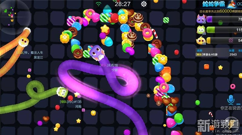 《蛇蛇爭霸》是一款超Q萌的休閑競技類網(wǎng)頁游戲。玩家在游戲中不僅需要比拼手速、考驗腕力,更是對你瞬間決斷力的終極挑戰(zhàn),因為在群蛇混雜的世界,一不小心就會撞上對方的身體而亡。選好合適的皮膚后,玩家就可以操控心愛的小蛇去吃五彩繽紛的糖果了,吃的糖果越多越大,蛇蛇也會變得越長越粗。游戲目前公開了畫面、戰(zhàn)斗、皮膚、寶箱、藍(lán)鉆特權(quán)、社交系統(tǒng)、段位系統(tǒng)、每日任務(wù)和團(tuán)隊模式等系統(tǒng)玩法?!渡呱郀幇浴返姆劢z們千萬不要錯過哦!喜歡貪吃蛇題材的玩家也可以一試身手。
