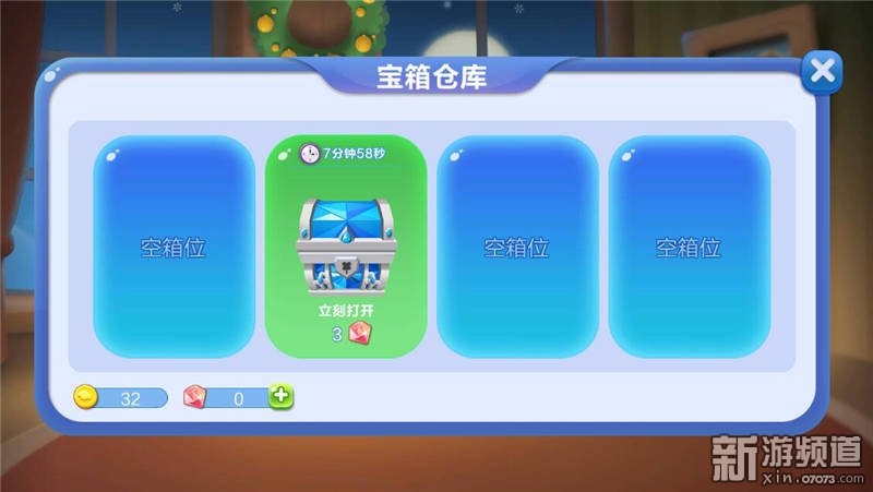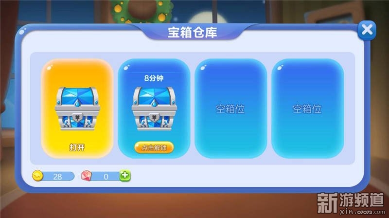 完成對應(yīng)任務(wù)或時間到達(dá)標(biāo)準(zhǔn)即可開啟寶箱。每個寶箱會給玩家兩個免費的道具或金幣。