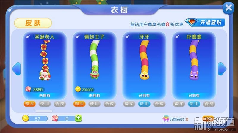 衣櫥界面里,有些蛇蛇是免費獲取的,有些則需要花費金幣或紅鉆來獲得。越貴的蛇越漂亮但性能相差不多。