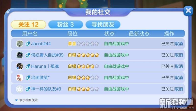 我的社交界面內(nèi)包含玩家已經(jīng)關(guān)注的好友。如果你的戰(zhàn)績優(yōu)異,別的玩家也會成為你的粉絲哦!