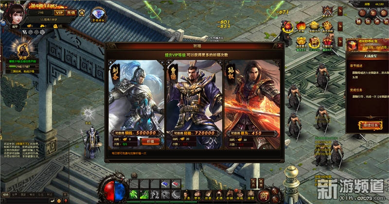 祈福系統(tǒng)是快速獲得銅錢、經(jīng)驗和修為資源的方式,銅錢可免費起付一次,其它則要消耗少量元寶。