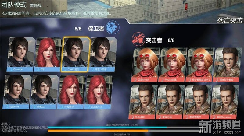 一般對(duì)抗分為保衛(wèi)者與突擊者兩組。玩家自己的角色會(huì)被黃色框標(biāo)注出來(lái)。