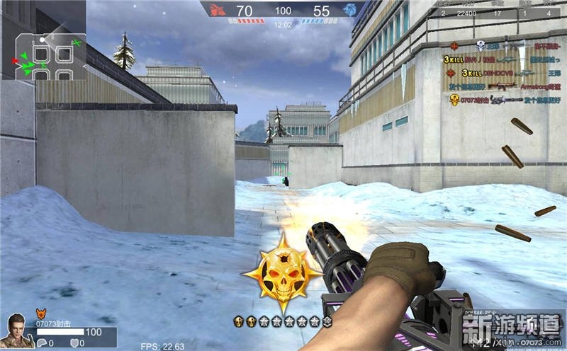 每次擊斃對(duì)手后屏幕都會(huì)顯示不同含義的勛章。右上角實(shí)時(shí)顯示著戰(zhàn)場(chǎng)中雙方殺敵狀態(tài)。
