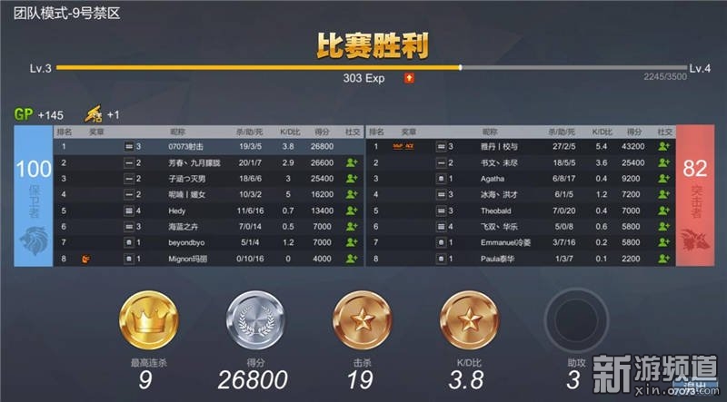 最后還有兩支隊(duì)伍的詳細(xì)對(duì)比,顯示了每名隊(duì)員的殺敵數(shù)、助攻數(shù)以及被殺次數(shù),每次戰(zhàn)役都可獲得GP幣獎(jiǎng)勵(lì)。