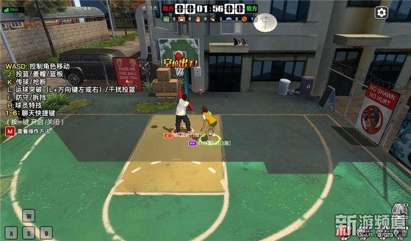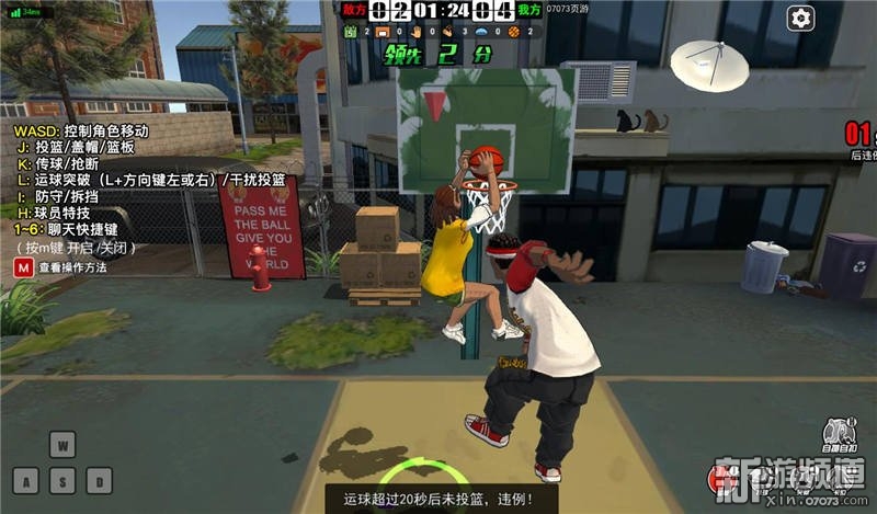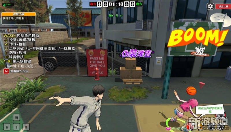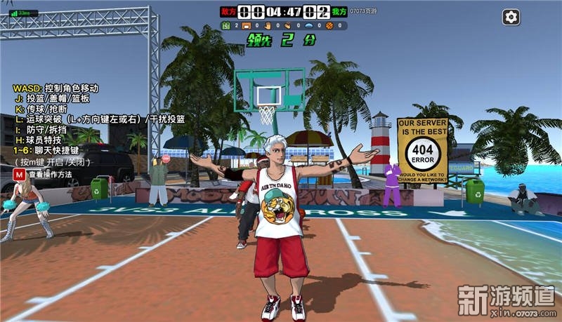 玩家在距離籃筐較近的位置時可以灌籃,如果灌籃未進球可以點擊“J”鍵跳起搶籃板并再次投籃。
