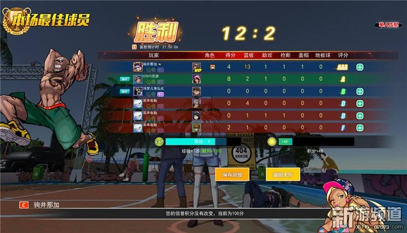 一場比賽結(jié)束后屏幕會顯示兩隊本場比賽時的主要信息,包括每人的得分、助攻、籃板以及最終評分。