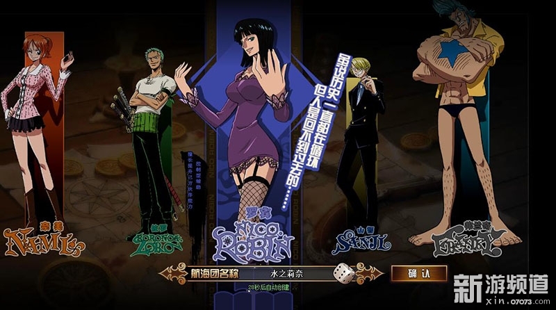 《航海王OL》一共有五種職業(yè)角色可供選擇,游戲角色的制作還是比較忠于原著角色形象的,其中五種職業(yè)包括羅賓、娜美、佐羅、山智以及弗蘭奇??赡芸催^動漫原著的玩家會發(fā)現(xiàn)少了主要人物蒙奇·D·路飛,帶著這個疑問我們進入這個奇幻的世界吧!