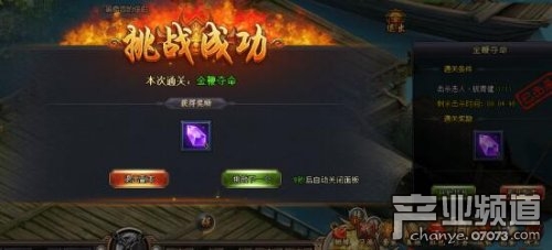 這是迎戰(zhàn)惡人錢青健勝利后的場(chǎng)景,本次通關(guān)“金鞭奪命”??磥磉@個(gè)金鞭也不怎么樣嘛,還說是奪命估計(jì)也就奪了自己的小命。連續(xù)對(duì)傲天射雕英雄傳中的個(gè)人BOSS一頓胖揍,拿到一些材料之后,小編有些飄起來了。說實(shí)話,這里面的BOSS確是不怎么樣,什么時(shí)候能來點(diǎn)厲害的呢?據(jù)說,越到后面越厲害,于是小編就去了鬼門龍王,找到了惡人沙通天。